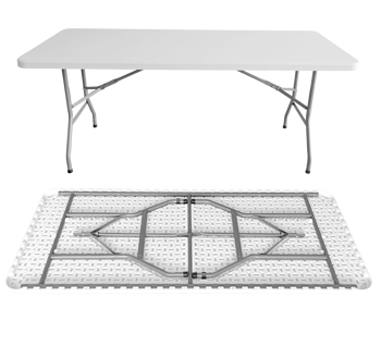 Vente en gros de mobilier d'extérieur PE-HD table pliée en plastique table pliante de 8 pieds 6-8 personnes location de fêtes pour réunions de jardin